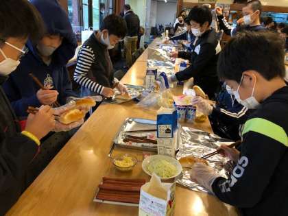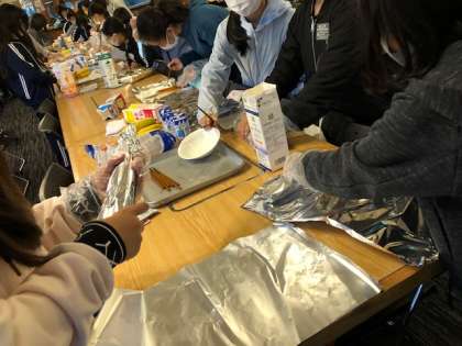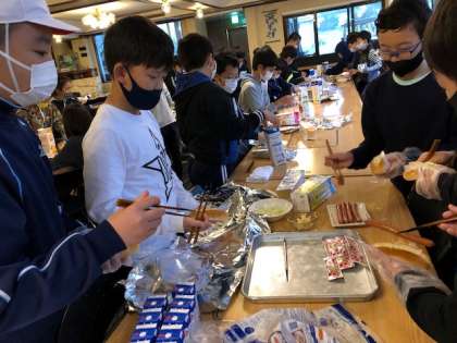 朝食のカートンドッグづくり。できあがりが楽しみです。