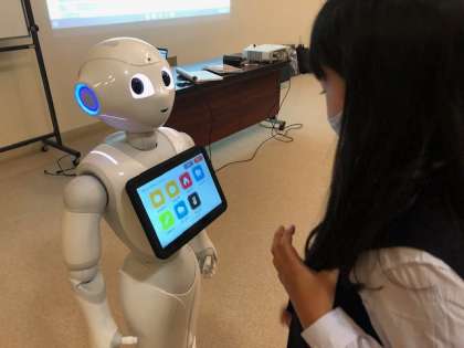 昨年度、30周年記念事業の記念品としていただいたPepperとのプログラミング学習がスタートしました。2年生は、自分たちの生活をふりかえり、どのような場面で役立つロボットがほしいか考えました。5.6年生は、これからの未来、どんな活躍をするロボットがいると生活が豊かになるかを考え、実際にプログラミングにチャレンジしました。ただしゃべらせるだけではなく、どんな場面で必要かを考え、気持ちがこもるように声の高さや速さを変えたり、身ぶり手ぶりと一緒にしゃべらせたりすることができました。