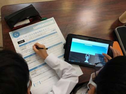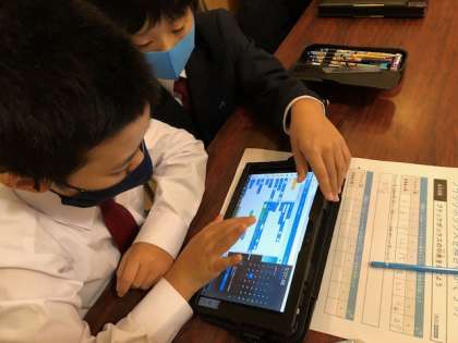 今日の4年プログラミング学習は、算数の発展学習に取り組みました。四則計算を使って、数字がブラックボックスの中を通過したら、どんな数字に変化するか考えました。ペアで力を合わせて考えることができました。次の時間には、自分たちでブラックボックスの計算式を考えます。今からとても楽しみなようです。