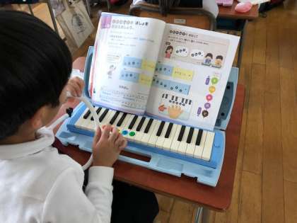 今日の1年音楽では、拍の流れに合わせて、うたったり、鍵盤ハーモニカを演奏したりしました。みんなで拍とリズムを合わせて演奏できました。