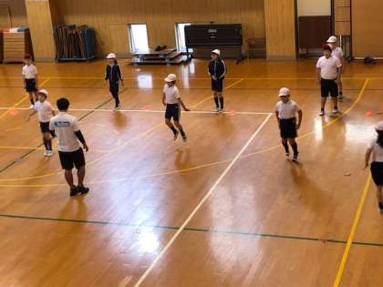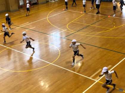 今日・明日と中央区子どもの体力支援事業として、走り方のコツを教えていただく学習に取り組んでいます。「うでの振り方」「脚のあげかた」「目線」「姿勢」など、たくさんのコツを教えていただきました。みんな、たくさんのコツを身につけようとしっかり耳を傾け、身体をうごかしていました。