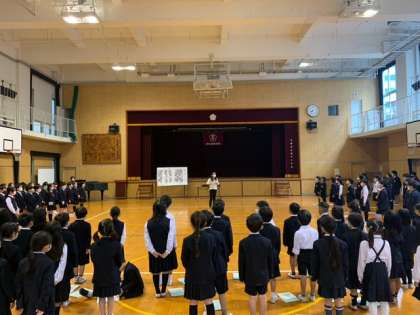 今日の音楽集会では、2つの旋律を重ねて「にじ」をうたいました。やわらかく声を重ね合い、お互いの声を聴き合いながらうたいました。