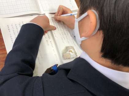 2年国語では、物語文を読んで、登場人物がどんな気持ちなのかを考えています。本文を読み、どの会話が誰が話した言葉なのかを整理することで、どんな言葉のキャッチボールが行われたのか、その時それぞれどんな気持ちだったのだろうか、と考えを深めていくことができました。