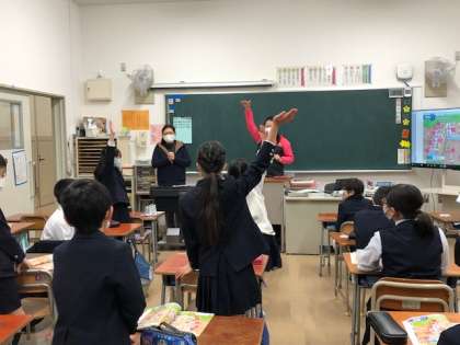 今日の4年外国語活動は、学校のさまざまな場所について学習しました。場所を紹介するお話を聞き、どの場所について説明しているのか考えていきました。これまでに学習した教科や動作、ものの名前などの英語を聞き取り考えていくことができました。