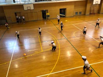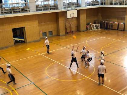 6年体育では、ベースボール型ゲームに取り組みました。ゲームを楽しくするための作戦を考えたり、お互いの動きをみて動きのコツを見つけ活かしたりする姿がみられました。