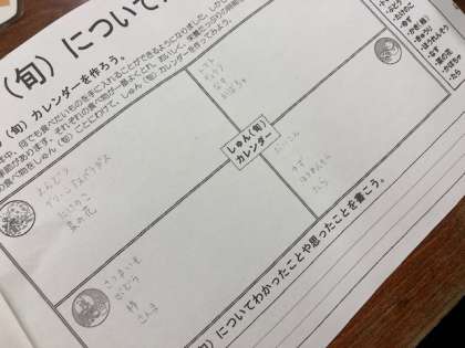 5年食育の学習では、身近な給食の献立から旬について学習しました。給食に出てくるしょくざの「旬カレンダーづくり」では、普段、さまざまな食材を口にしていますが、なかなかいつの季節によく出ているのか難しく悩んでいました。社会の学習や家庭科の学習なども思い出し、「旬カレンダー」が完成しました。是非、この学習を活かし、給食や食卓の献立から旬を感じていってほしいと思います。