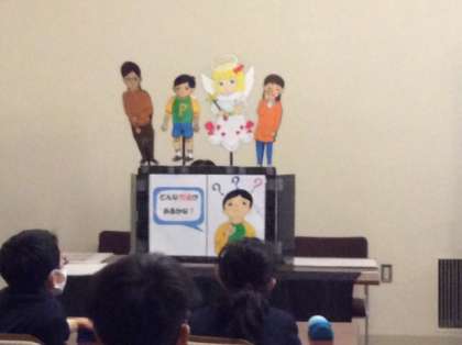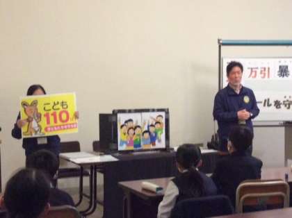 5年では、大阪府中央少年サポートセンターの方から、犯罪被害防止・非行防止についてのお話をお聞きし、「非行とはどんな行いか」「声かけ被害とは」など、自分たちの生活につなげて考えていきます。「自分たちのメールでの言葉は、どうだろう」「今日気づいたこと、お家に帰ったら家族で話をしなくては」と日々の自分の行動を振り返り、さらに広めようとする姿がみられました。