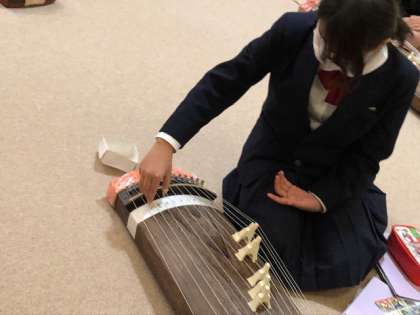 4年音楽では、「さくらさくら」のうたから曲のイメージを広げたことを活かして、音を重ねておことで「さくらさくら」を演奏しました。主旋律を演奏する人とオスティナート(くりかえしの音楽)を重ねる人にわかれ、2つの旋律を重ねて演奏しました。「音が重なると、たくさんのさくらが咲いている感じがするな」「同じ音楽が繰り返して重なっているから、さくらの花びらがひらひら散っているみたい」などおことの演奏からさらにイメージを広げていくことができました。