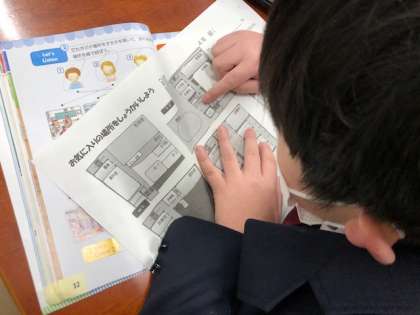 4年外国語活動では、英語で、自分のお気に入りの場所を紹介する活動に取り組みました。どうしてその場所が好きなのか理由と合わせて考え、伝え合うことができました。