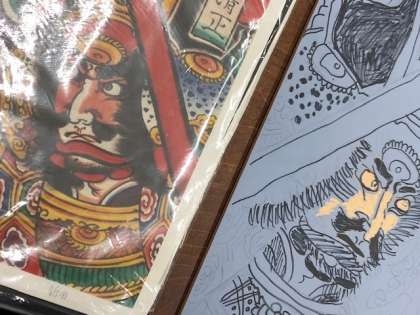 5年図工では、武者絵を木版画で表現します。白と黒のバランスを考え、どの彫刻刀をつかうといいか選んで彫り進めています。どんな作品ができあがるのか楽しみです。