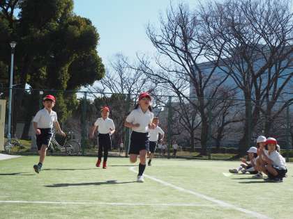 はじめての持久走記録会。ペースをまもり、最後までしっかりと走り切ることができました。是非、ご家庭でも、今日のがんばりをお話いただければと思います。