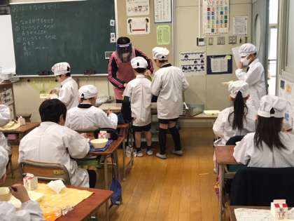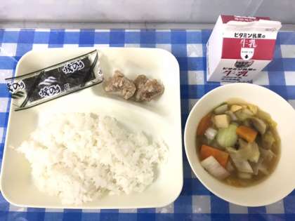 今日の給食は、鶏肉のからあげ、まる天と野菜のうま煮、焼きのり、ごはん、牛乳です。からあげは、みんなが大好きな待ちに待ったメニューです。教室でも、おかわりに並んでいる姿が見られました。給食を返しにきた児童が、「今日のからあげ、めっちゃおいしかったです!!」「おかわりもできた!!」「いっぱい食べられて大満足!!」と、口々に感想を伝えてくれました。大絶賛の献立でした。
