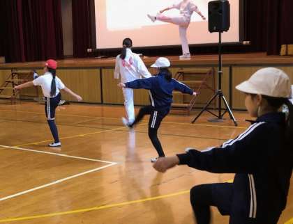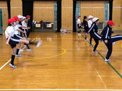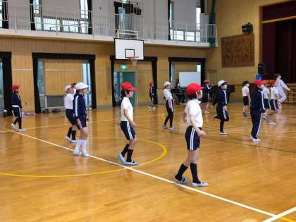 体育の授業の一環として、OSK歌劇団の方をゲストティーチャーにお招きし、ダンスの学習をしました。みんな、お手本に合わせて、身体いっぱいダンスを楽しんでいました。