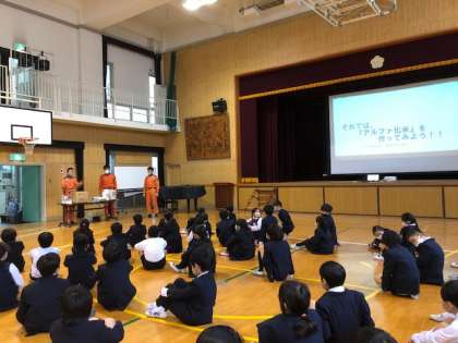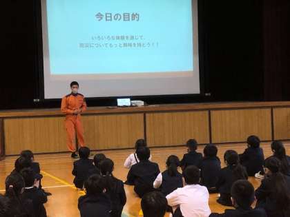 4年総合「船場防災探検隊」の学習として、消防署の方に、防災について教えていただきました。VRによる火災体験や消火体験、防災グッズづくりなどを通して、さまざまな視点から、防災について考えることができました。また、防災グッズにどのようなものを用意しておくとよいのか考える中で、非常食の体験もさせていただきました。「もし災害が起こったとき、こうやって冷静にみんなで力を合わせて自分たちのことを守れるようにしたい」「災害のとき、こんなあったかくて美味しいご飯を食べたら、すごく嬉しいと思うな」と、自分たちが今できること・もし災害が起こったときにはどんな行動ができるのかなど自分の生活とつなげて考えていくことができました。是非、今日の体験をご家庭でも共有していただければと思います。