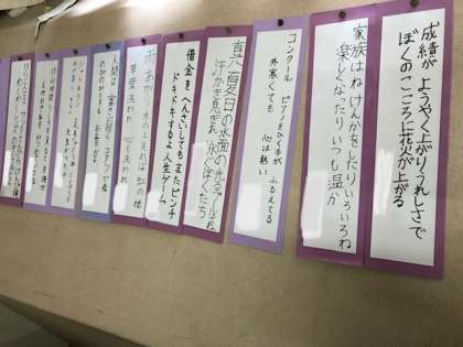 5年国語の学習では、心に残ったことや発見したことなど、心が動いたことを短歌に表しました。三十一音という限られた中で、どれだけ伝えることができるか工夫を考えることができました。