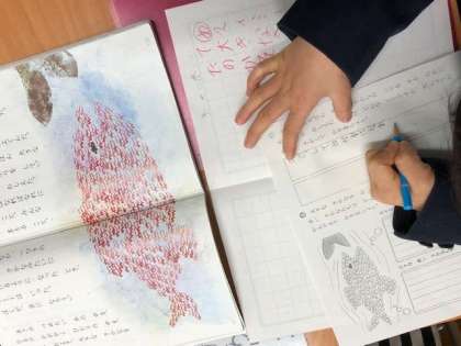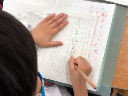 1年国語では、物語文を読み、登場人物の行動の意味について考えていきました。本文から読み取り、一人一人がしっかりワークシートにまとめることができました。