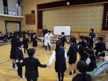 2月14日には大阪市立科学館の方を講師にお招きし「サイエンスショー」を実施しました。電池のヒミツについて学習し、身近なものでできる電池を紹介してもらったり、子ども達が電池になったりと、楽しく科学について学びました。また、6年生は証券学習も行い、証券についてわかりやすく説明してもらいました。