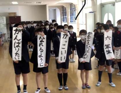 4年生は、国語の時間に学習した短歌と、音楽の時間につくった手締めで、卒業の門出をお祝いしました。