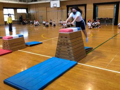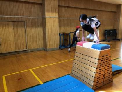 5年体育では、跳び箱を使っての学習に取り組んでいます。今日は、「開脚跳び」と「かかえこみ跳び」のコツを考えました。「手をしっかりとつく」「目線に気をつける」「ロイター板の跳ぶ位置」など、身体の動きをしっかりととらえ、コツをみつけていくことができました。
