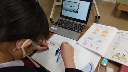 オンラインでつながることで、家庭で学習する子も学校で学習する子も、同じように学びを進めました。