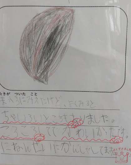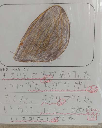 色や形、大きさなど、様々な視点からじっくり観察し、見つけたことや気付いたことを観察カードに書きました。
