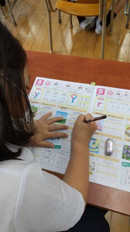 3年生の国語では、ローマ字を学習しています。「パソコンでの文字入力が早くできるようになりたい」と、読み方や書き方をしっかり確認していました。