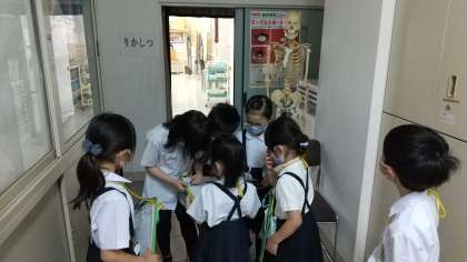 2年生は、学校を探検する1年生に、様々な部屋について紹介しました。開平小学校の先輩として、がんばりたいという気持ちがその姿から溢れ、どんな学習で使うのか、誰がいるのかなど、1年生が分かりやすいように話すことができました。