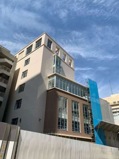 学校正面の幕もとれました。全体のイメージがわかるようになってきました。