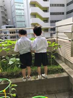 左が6月21日、右が6月29日に撮った写真です。この1週間で、10センチメートル以上伸びていると思います。みんな花が咲くのを楽しみにしています。