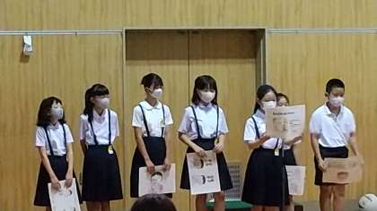 今朝の全校朝会では、2つの委員会からお知らせがありました。これも、全校が集まった朝会ならではの光景です。