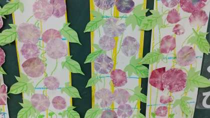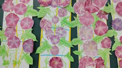 みんなのアサガオが集まると、教室がパッと明るくなりました。まだまだたくさんの花を咲かせてほしいですね。