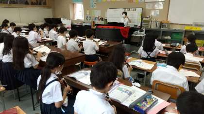 4年生音楽「旋律のとくちょうを感じ取ろう」では、2つの旋律を比べて、それぞれの旋律に合ったリコーダー奏の息の使い方を考えました。また、2つのパートに分かれて演奏し、響き合いを感じながら演奏することができました。