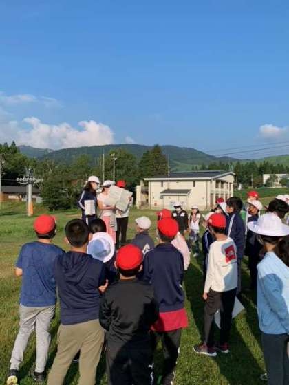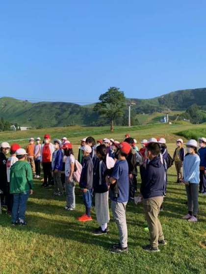 おはようございます。最終日の朝を迎えました。高原での朝の会。気持ちのよい快晴です。