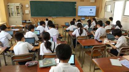 4年生では、一人一人がデジタルドリルを使って、算数「大きな数」の力を確かめました。