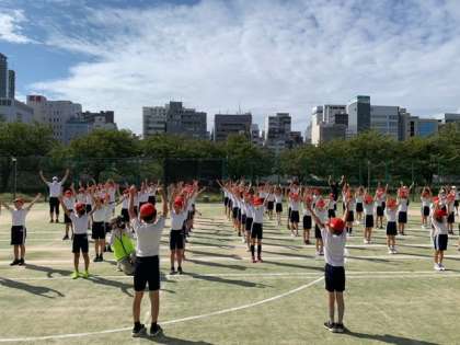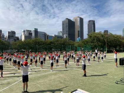 第1日目の体育参観を始めます。ラジオ体操しっかり!