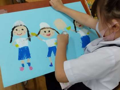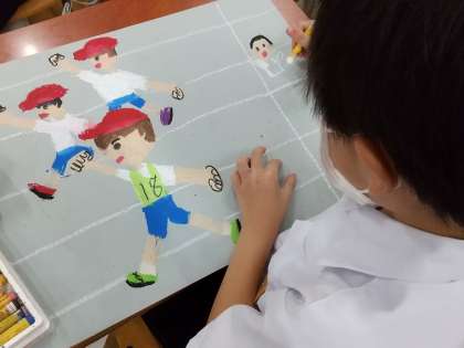 かけっこ、玉入れ、ダンスなど、一人一人が自分のがんばったことを生き生きと描くことができました。