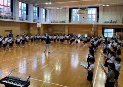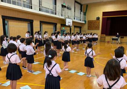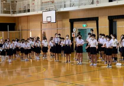 2年生、4年生、6年生の3学年での実施でしたが、「笑顔のヒ・ミ・ツ」を心を一つに合わせて歌い、体育館に美しい声が響き渡りました。