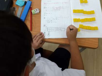 ブロックや図を使って考えたり、九九を利用して考えたり、一人一人がこれまで学習したことを生かして問題解決に取り組みました。