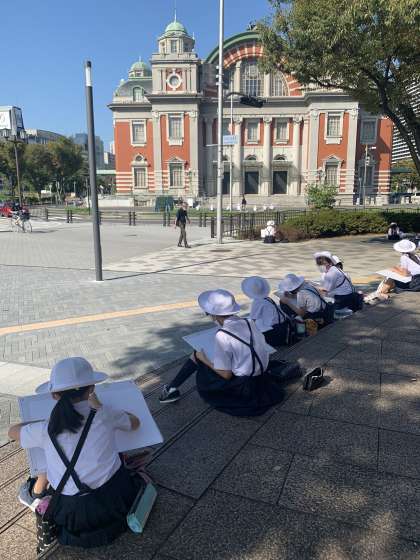 6年生は、学校から徒歩数分のところにある中央公会堂へ写生会に行きました。