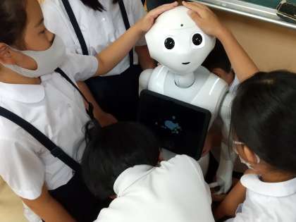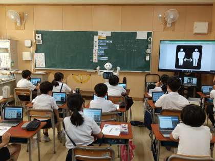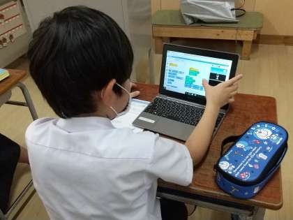 今週と来週は、プログラミング学習週間です。久しぶりのpepperとの対面に子どもたちの歓声が上がりました。この2週間は、中高学年を中心に、様々なプログラミングの仕方を学び、pepperが話したり、動いたりできるようにします。