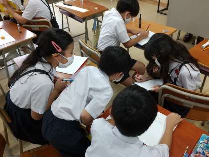 一人で考えるとどんなことを調べたいかがなかなか浮かばなかった子も、グループで伝え合い、話し合うことで、探求したいことが増えていきました。「なぜつくりかえたのか?」「何年かかったのか?」「誰が中心となったのか?」「機械のない時代にどのように工事をしたのか?」など、たくさんの課題が集まり、これからの学習に意欲をもつことができました。