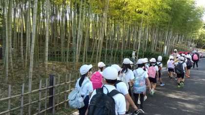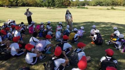 万博公園に到着。みんな広場の大きさに大興奮。今から思い切り遊びます。
