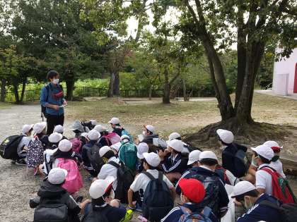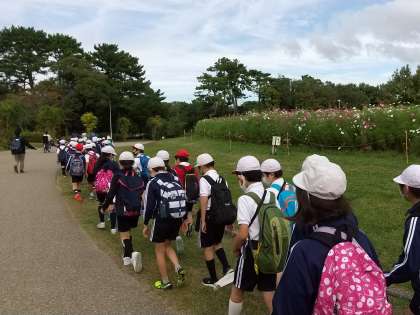服部緑地公園に到着!周りの木々に秋を感じる遠足日和です。