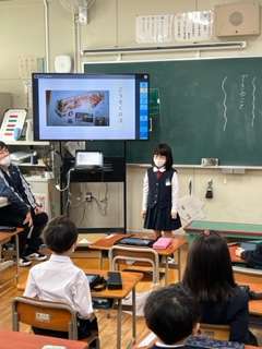 いろいろな船について調べ、タブレットを使って発表しました。1年生凄い!