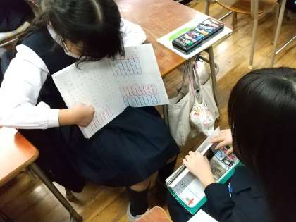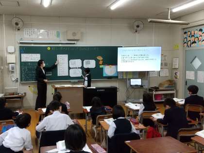 一人一人がノートに考えを書いたあとは、近くの友達と考え方を交流。自分のノートを指し示しながら、上手に伝えることができました。また、学級全体での交流でも、自分の考え方と比べながら友達の発表を聞き、考えを深めたり広めたりすることができました。