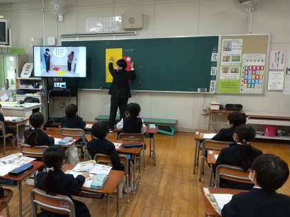 1年生算数の「どちらがひろい」では、2枚のレジャーシートのうち広いのはどちらかを考えました。