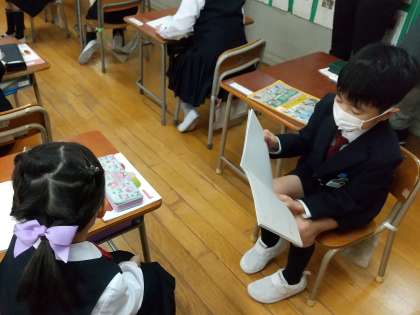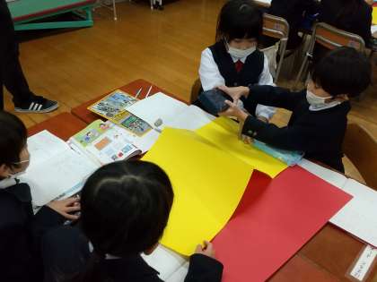 前の時間に学習した方法では比べられないことから、ベアやグループでくらべ方を話し合い、色々と試しながら、よりよい方法を考えることができました。