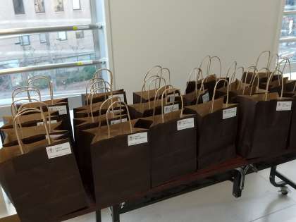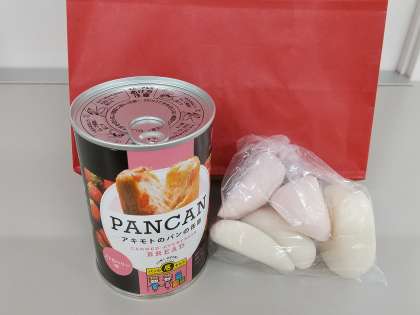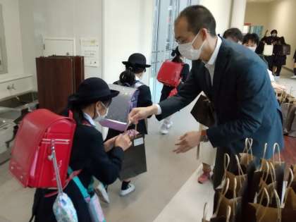 地域の大切な行事として行われてきた「開平餅つき」の開催が見送られたため、愛日地域活動協議会からお餅を寄贈していただきました。防災物品としていただいた非常食用缶詰めパンとともに、PTA役員の方から、児童一人一人に手渡ししていただきました。