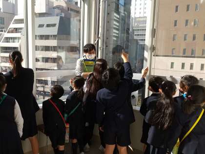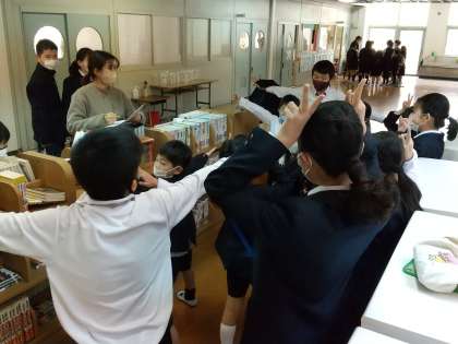 校舎から見える建物の窓の数を当てるゲームやトランプの出た数を足し算して高得点を目指すゲーム、同じポーズをした人の数が得点になるゲームなど、内容は様々。班のみんなで協力したり、高学年の知恵を生かしたり、心を一つにしたりしながら、高得点を目指しました。
