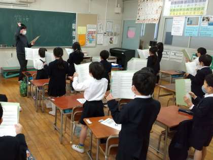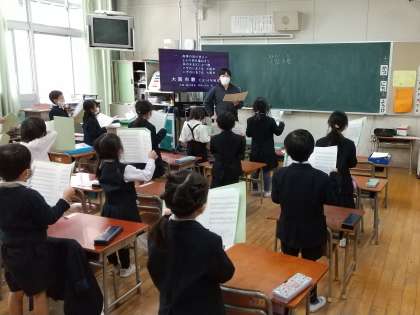 1年生では、2学期の終業式に向けて大阪市歌を練習しています。